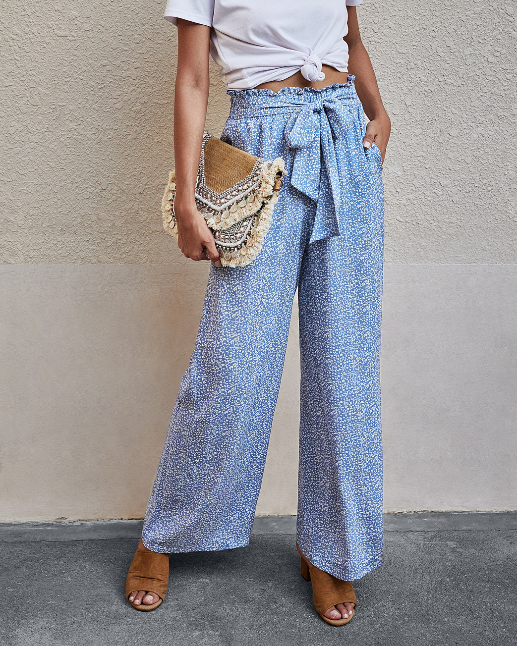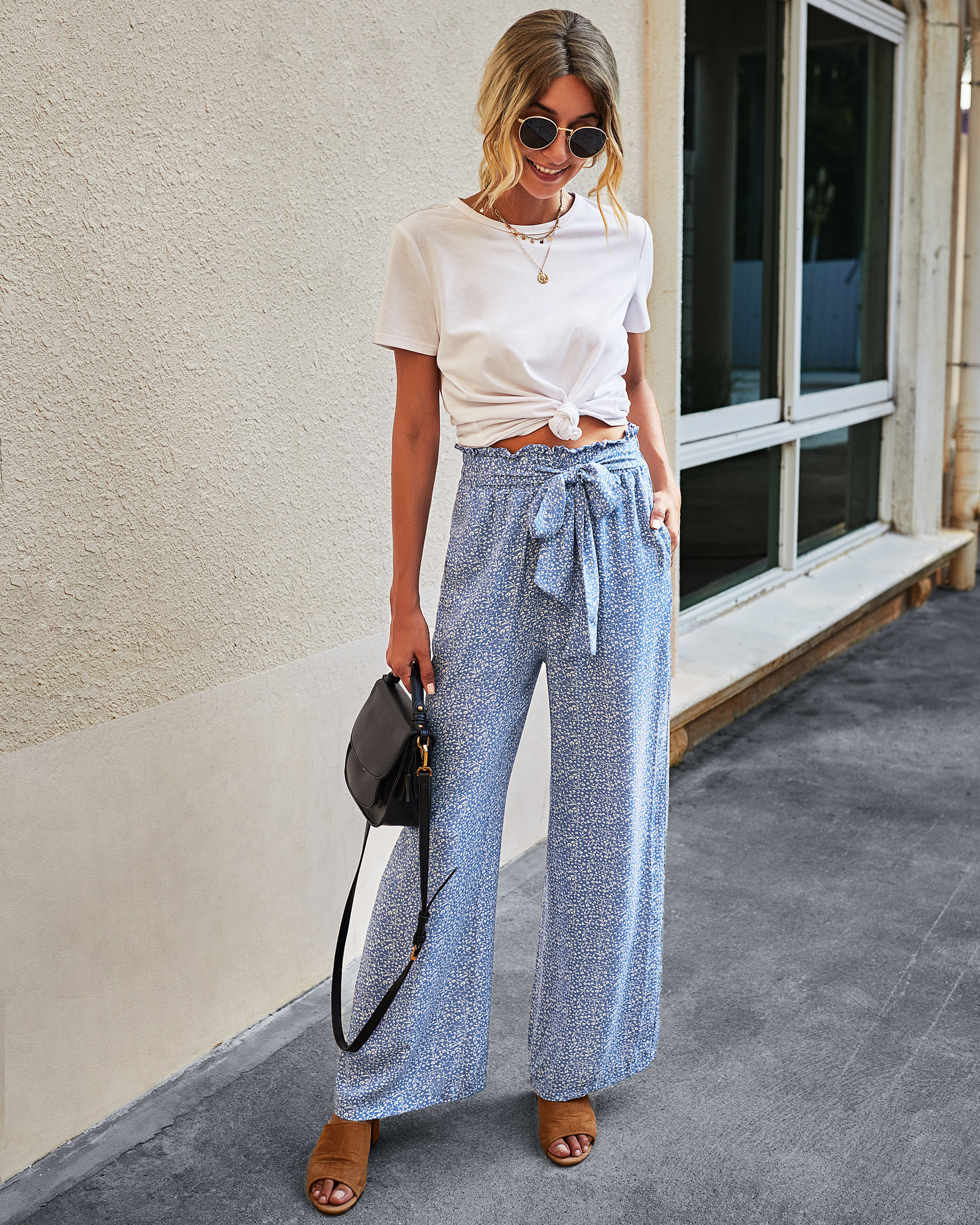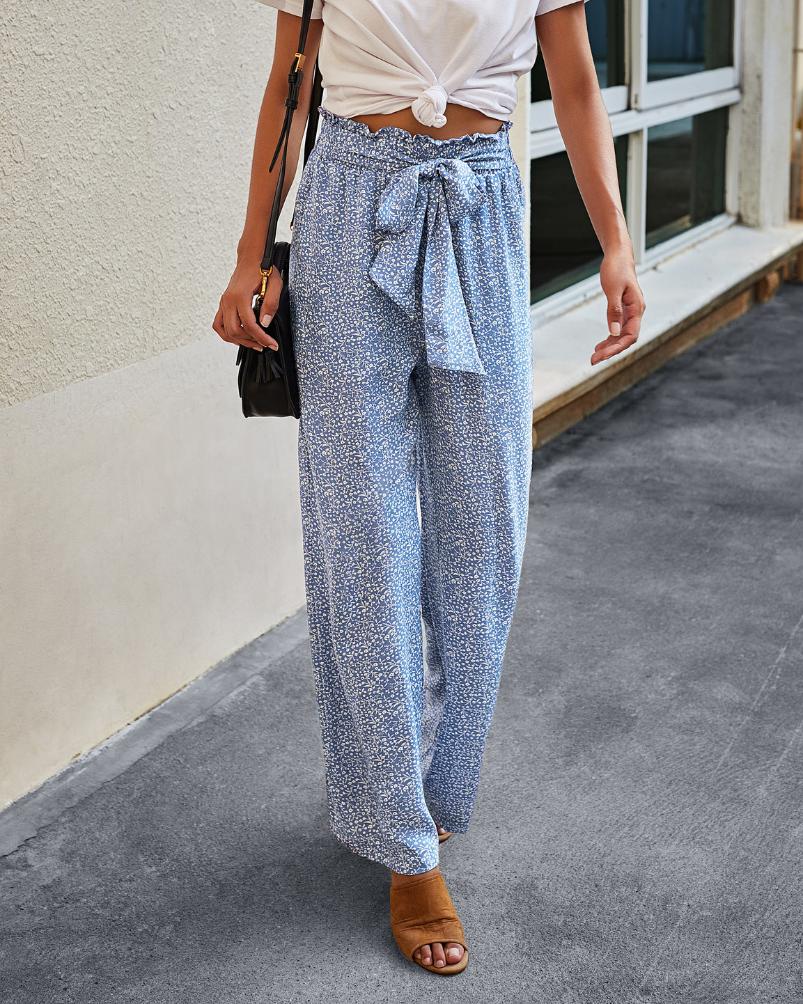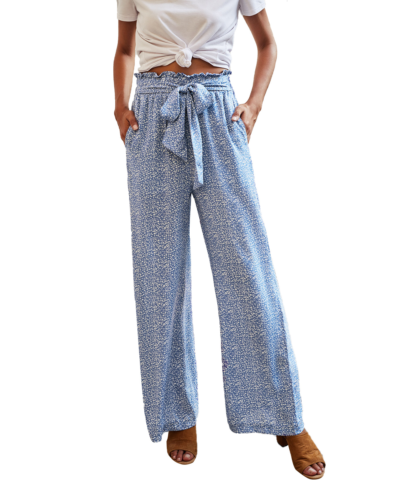 • Women's Fashionable Leopard Print Lace-up Wide-leg Trousers