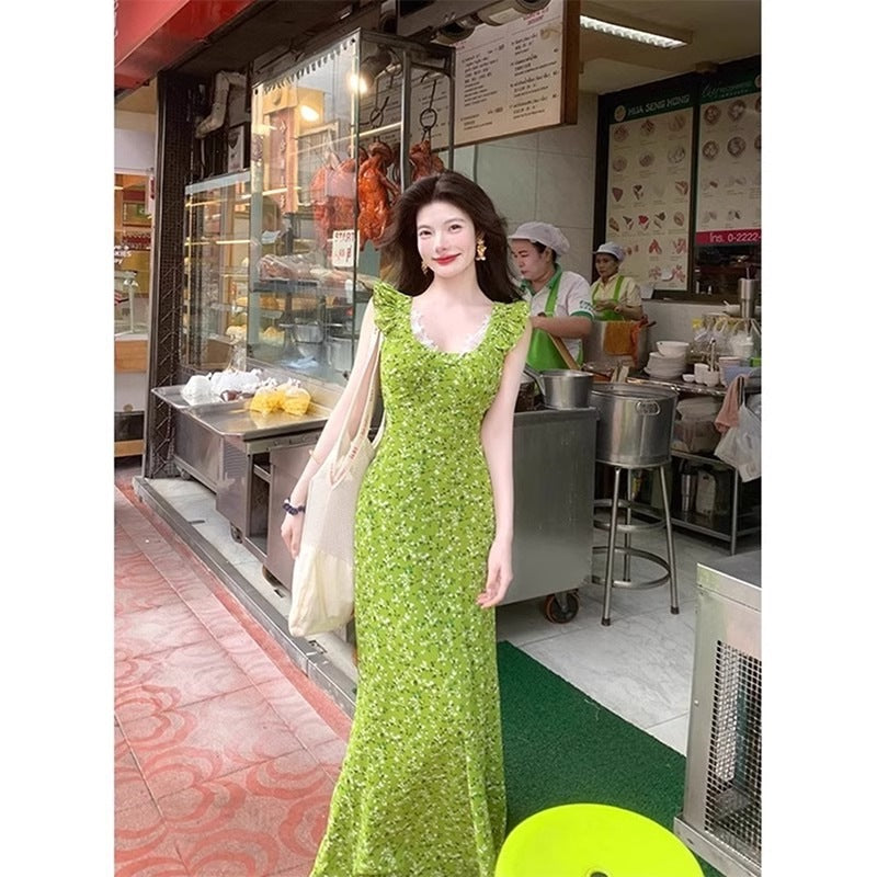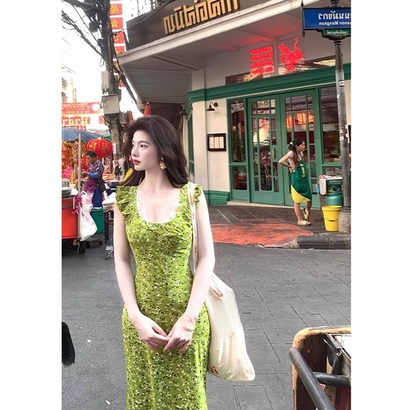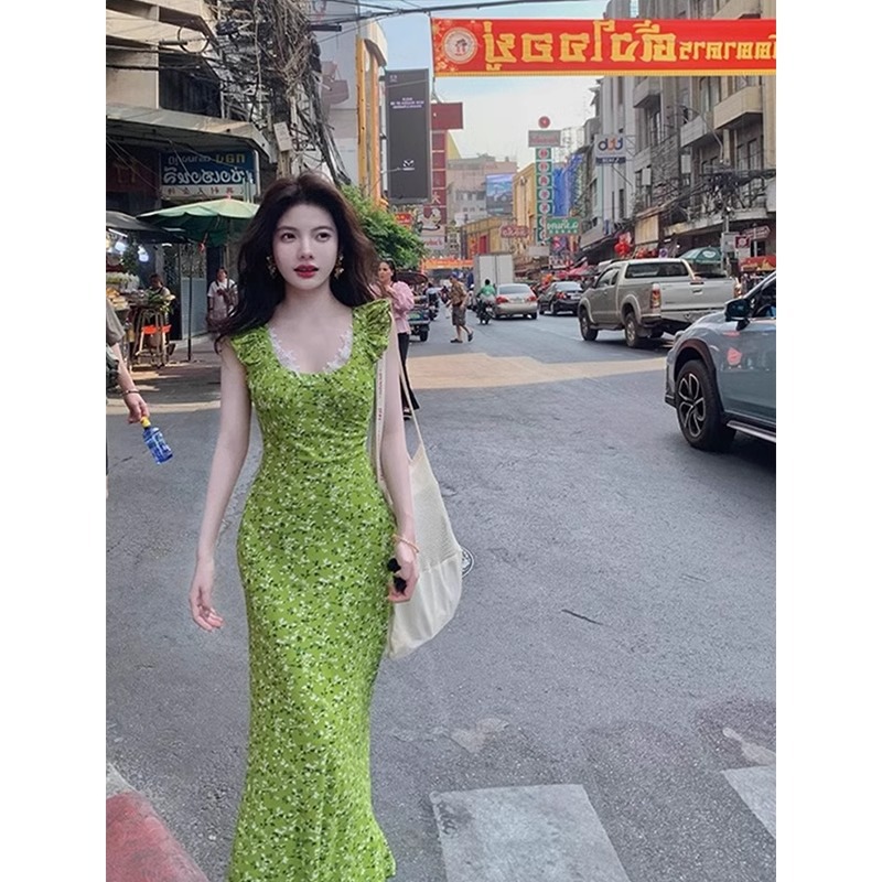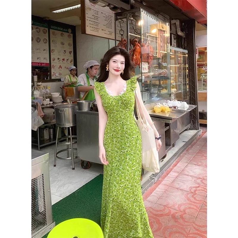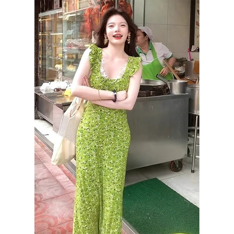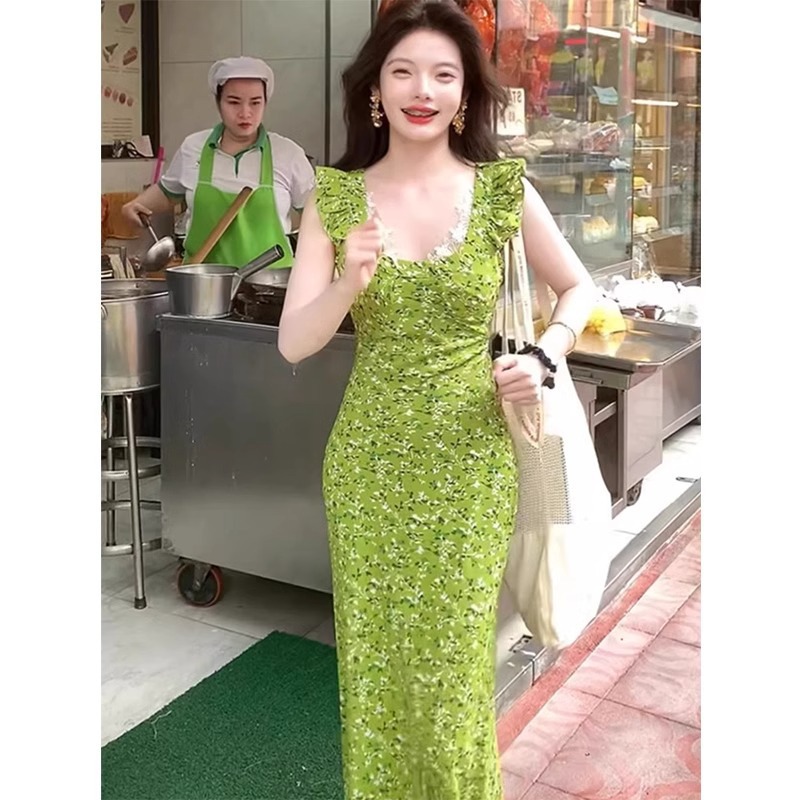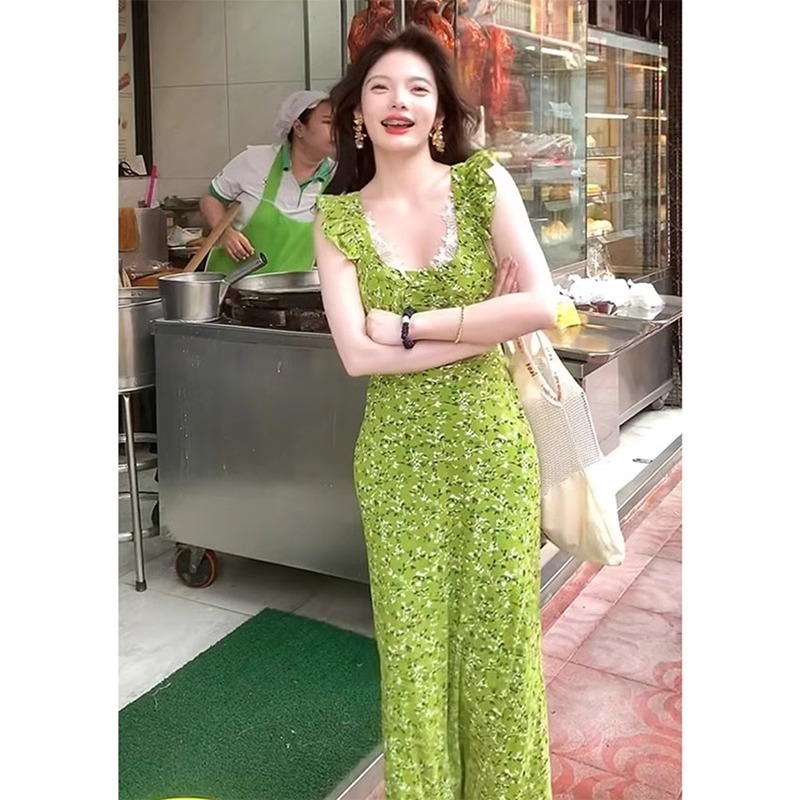 • Womens Floral Waist-Cinching Slim-Fit Sexy Lace Slip Dress