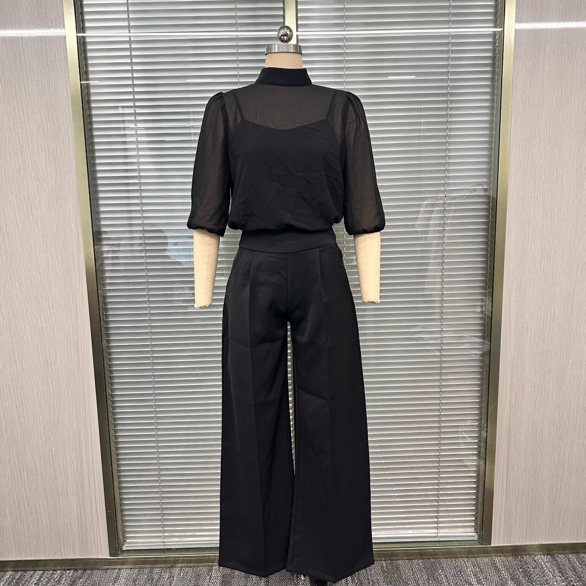 • Womens New Summer Figure-flattering Printed Short-sleeve Wide-leg Pants Three-piece Set