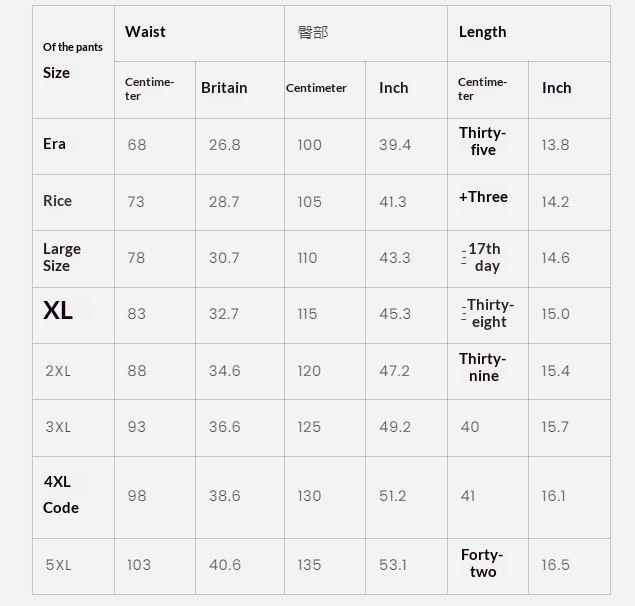 Sizes: S, M, L, XL, 2XL, 3XL, 4XL, 5XL