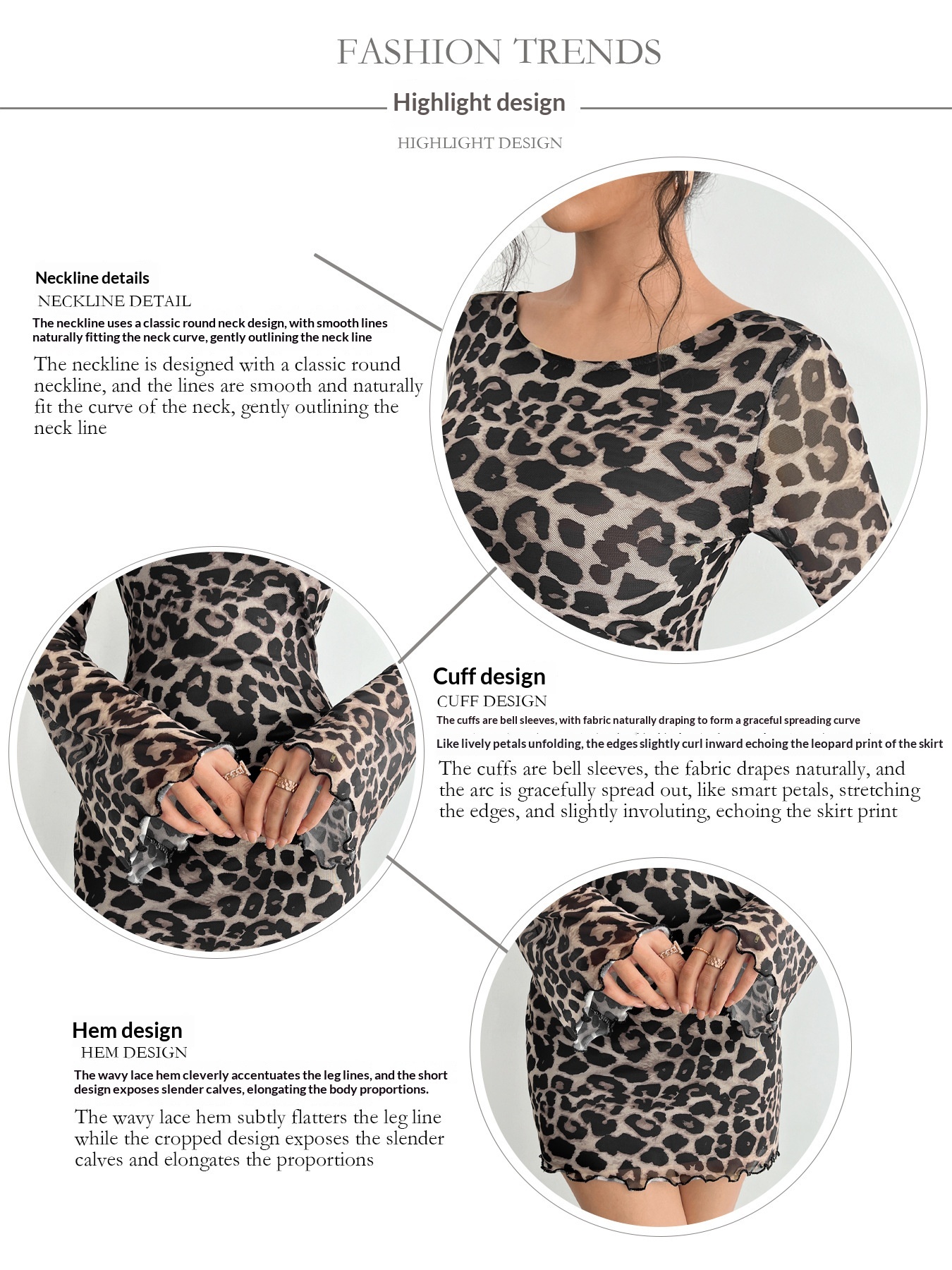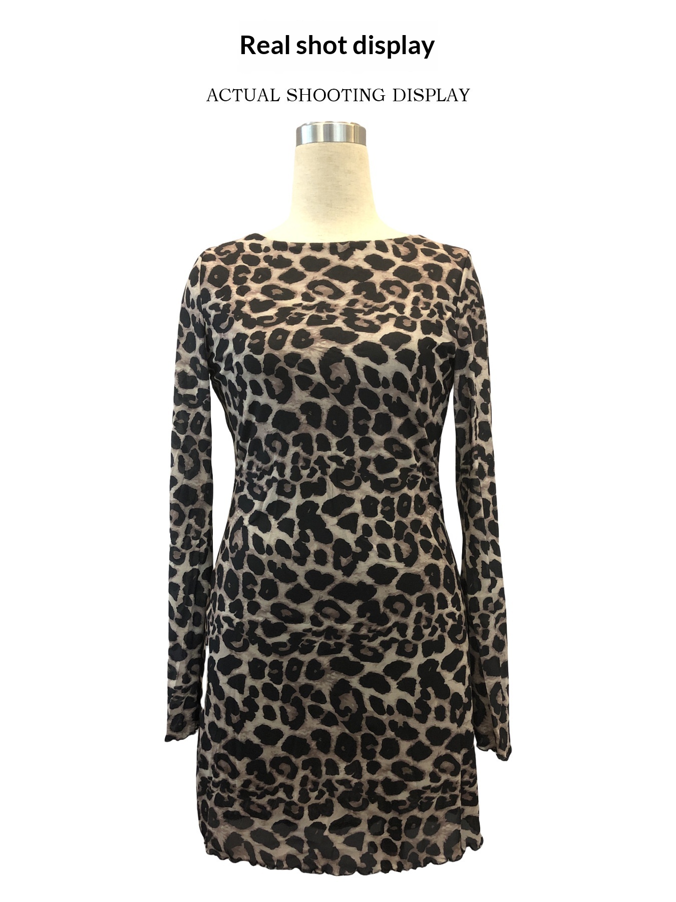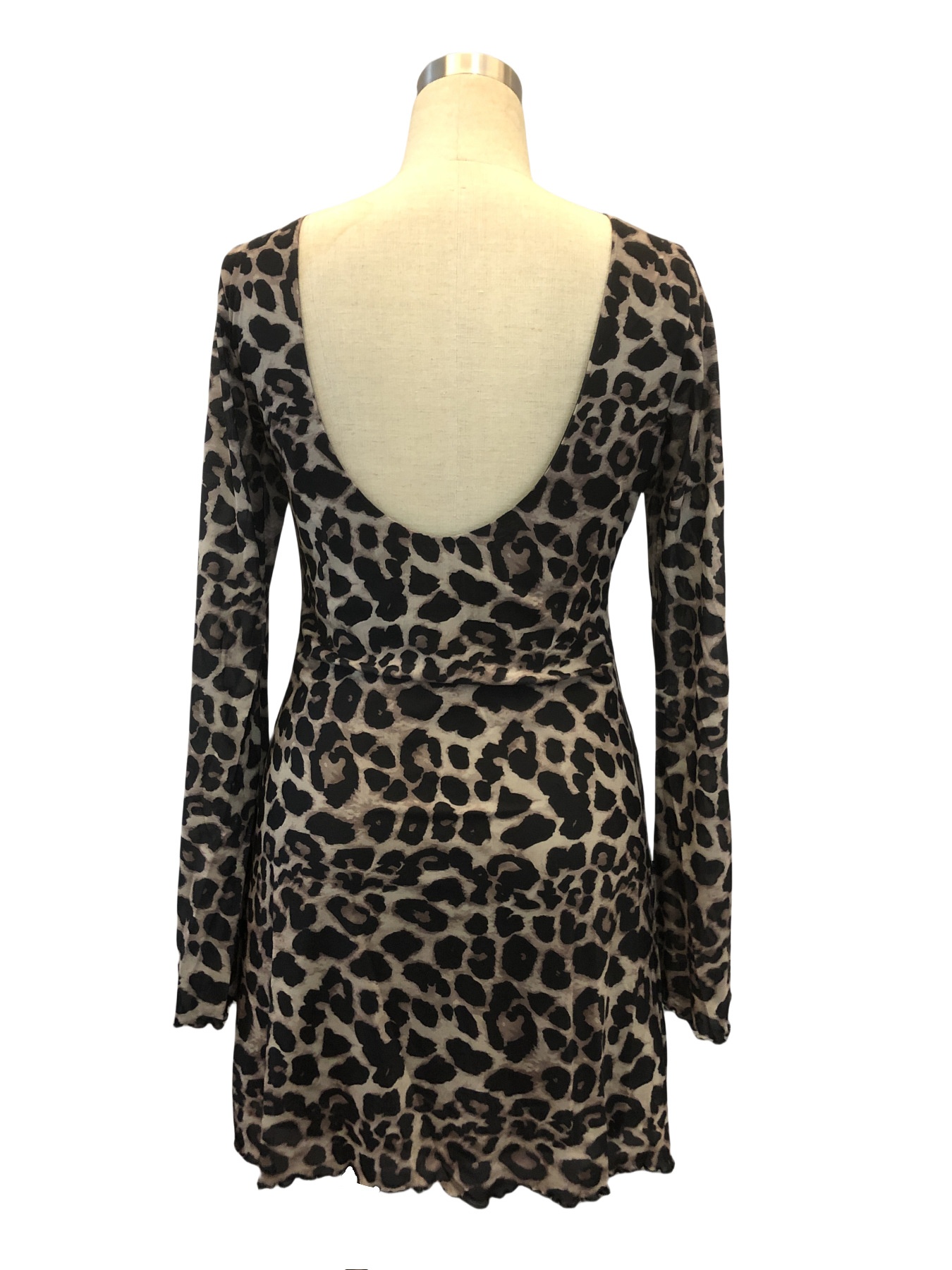 • Women's Sexy Leopard-Print Backless Flare-Sleeve Mesh Dress
