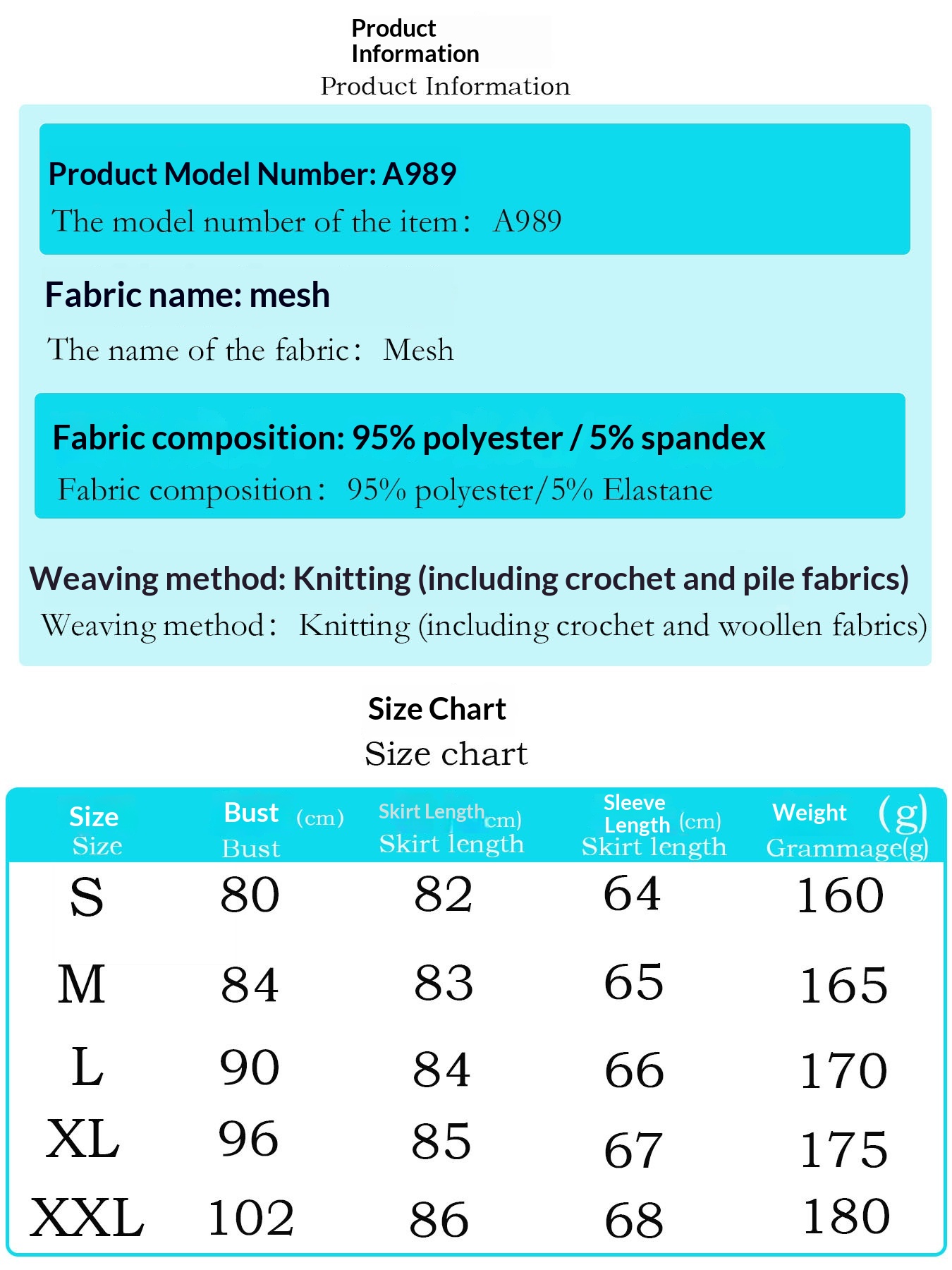 Sizes: S, M, L, XL, XXL