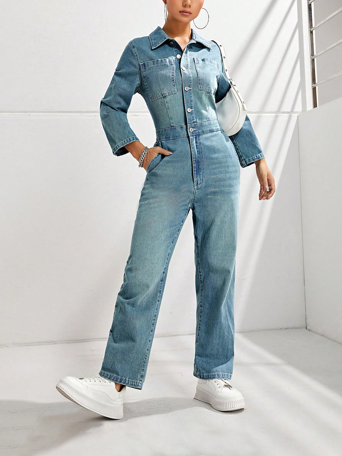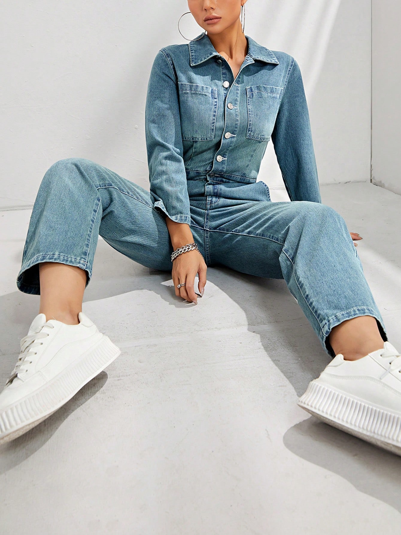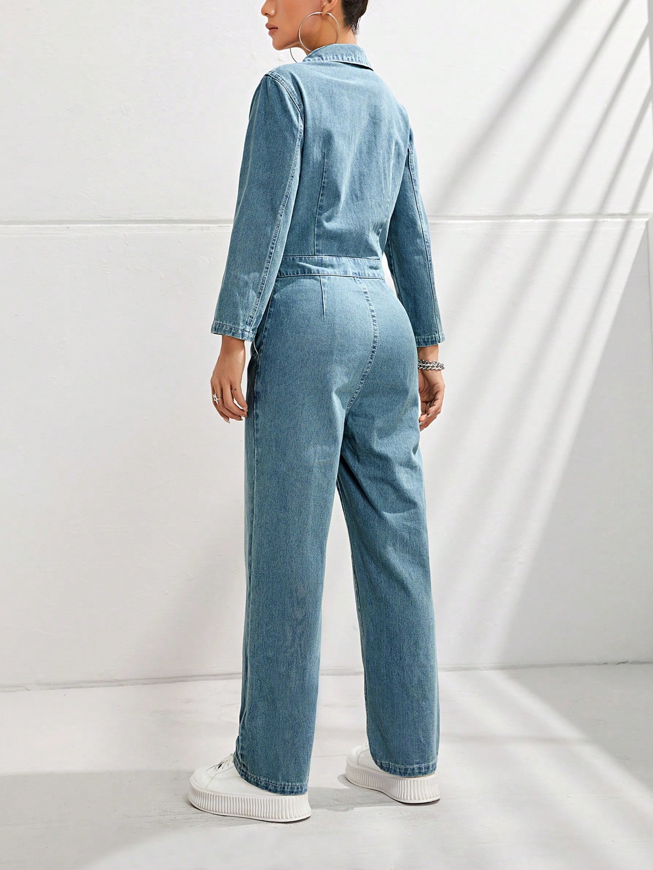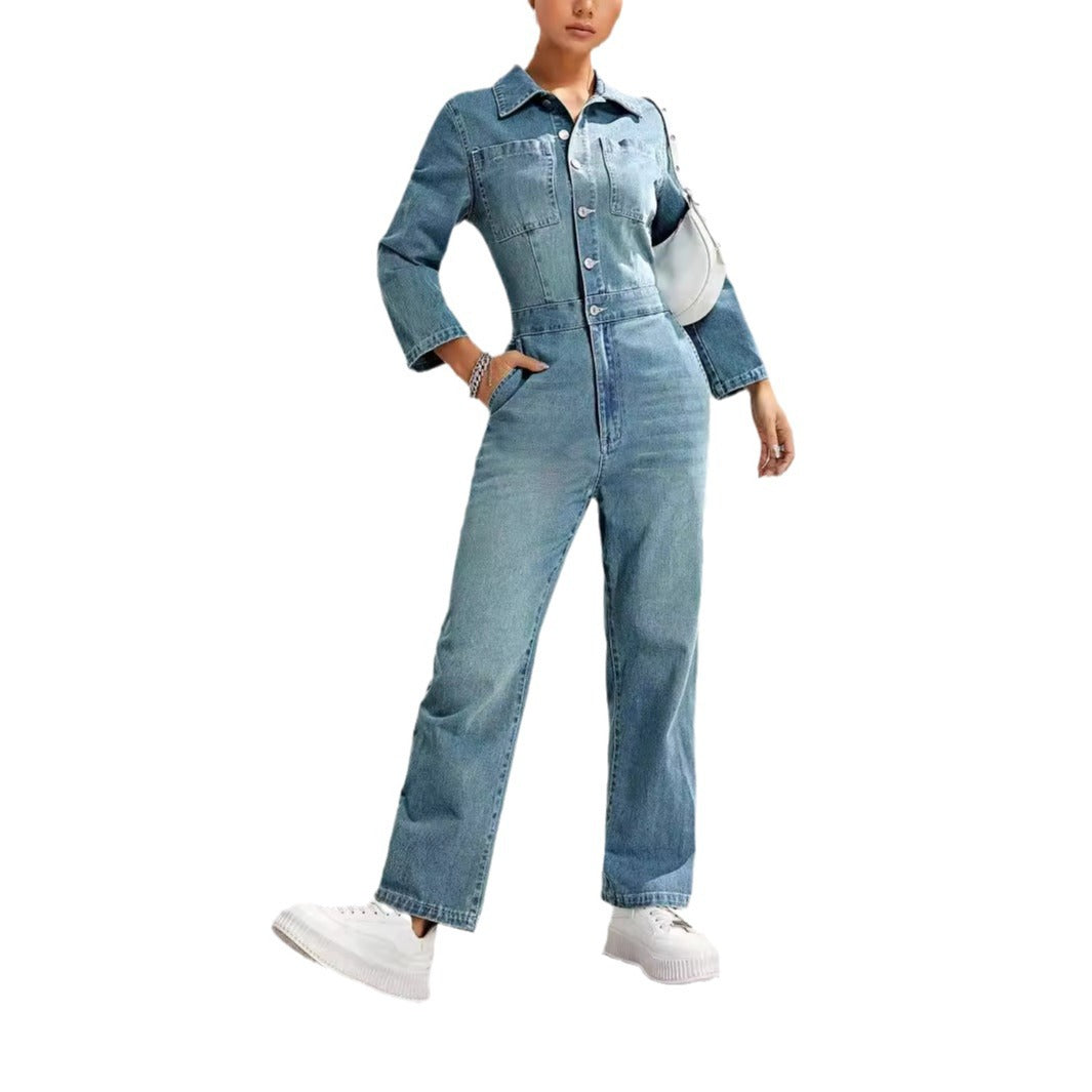 Women's Slim-fit Long-sleeved Denim Jumpsuit