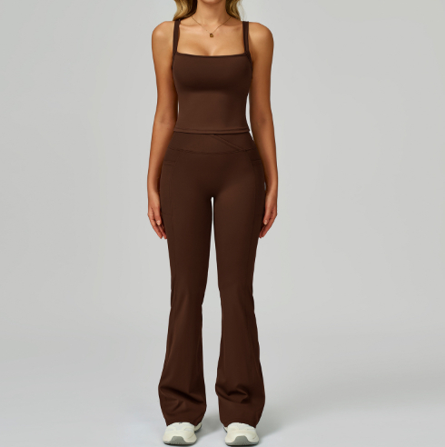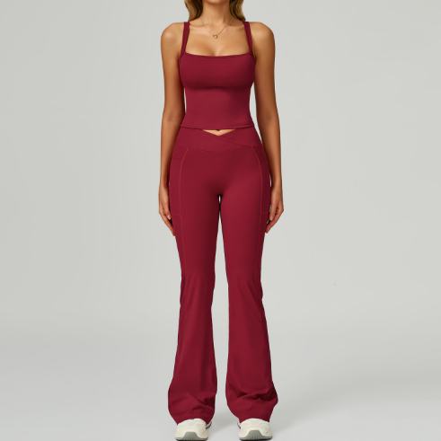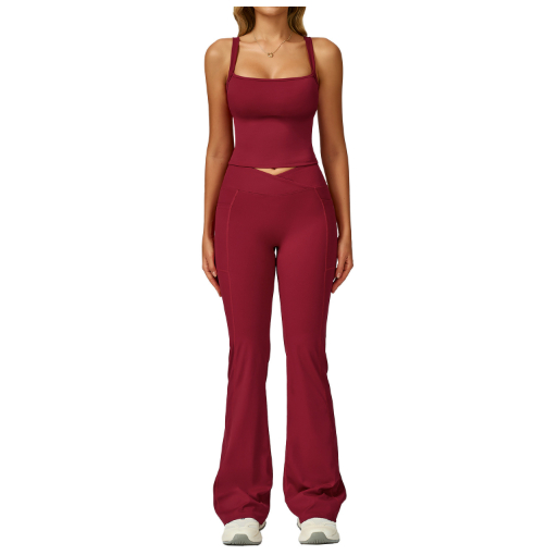 Colors: 2002 Tank Top + 2030 Flared Pants��Elegant Black, 2002 Tank Top + 2030 Flared Pants��Cherry Red, 2002 Tank Top + 2030 Flared Pants��Coffee Brown, 2002 Tank Top + 2030 Flared Pants��Midnight Blue, 2002 Tank Top + 2030 Flared Pants��Rose Pink.