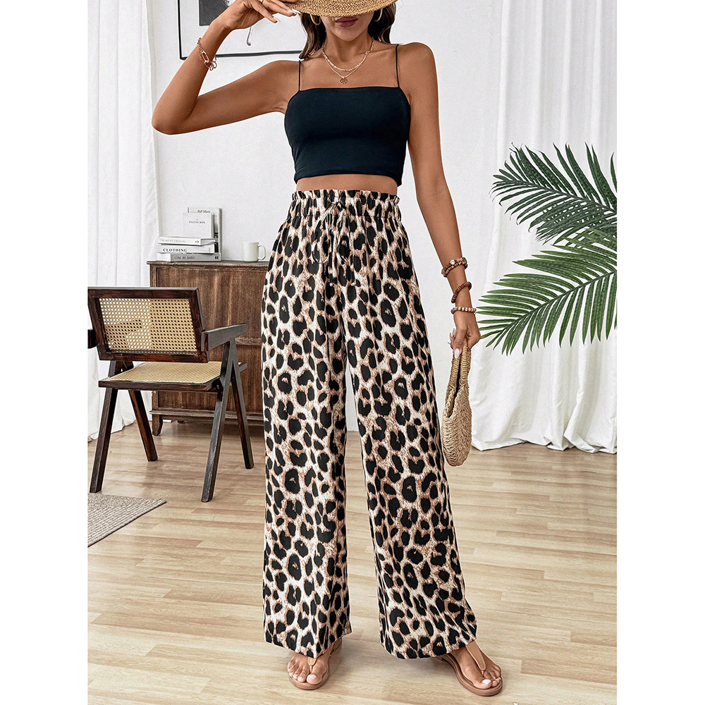 • Women's Straight-leg Wide-leg Pants Leopard Print Casual Pants