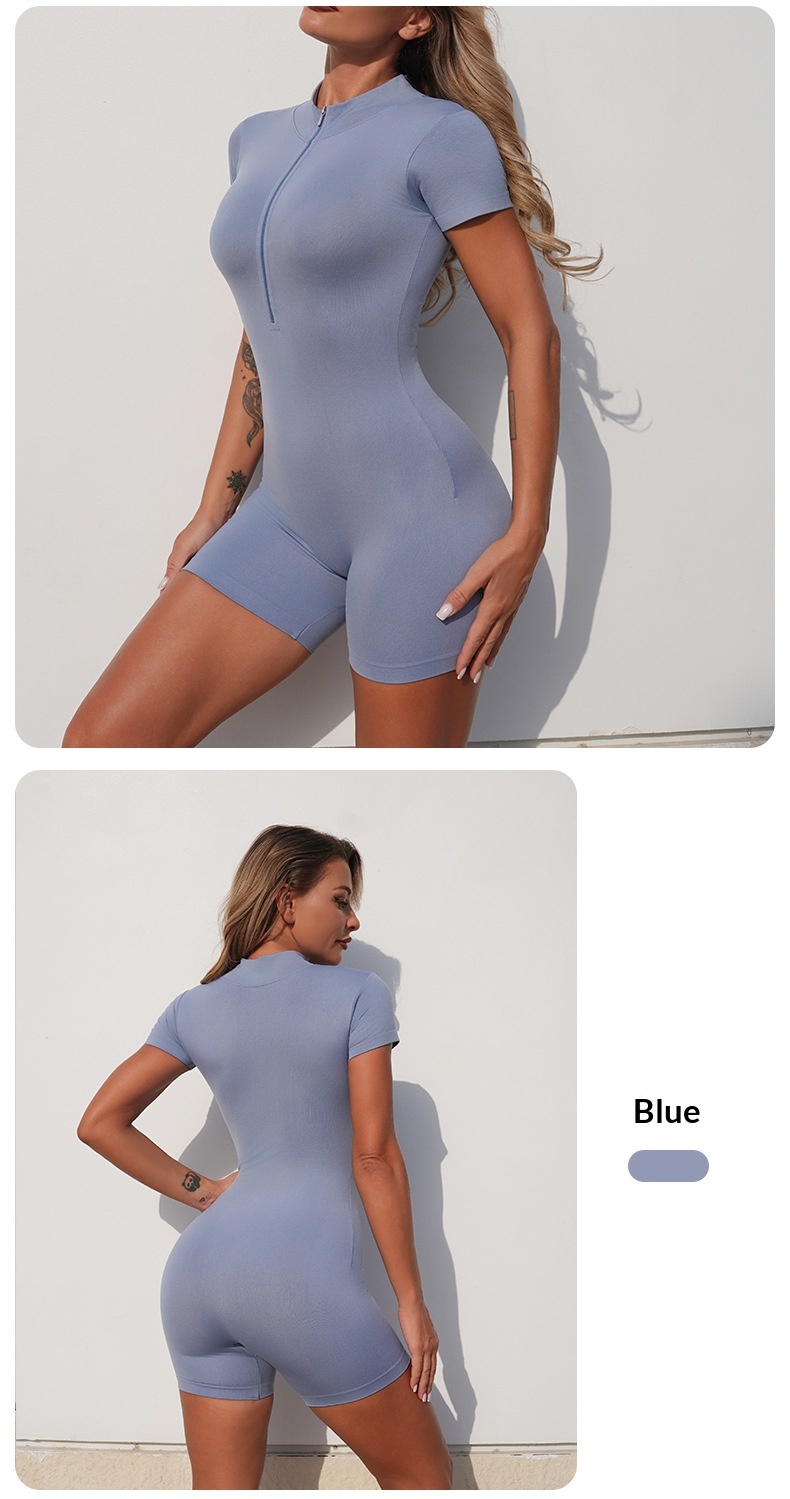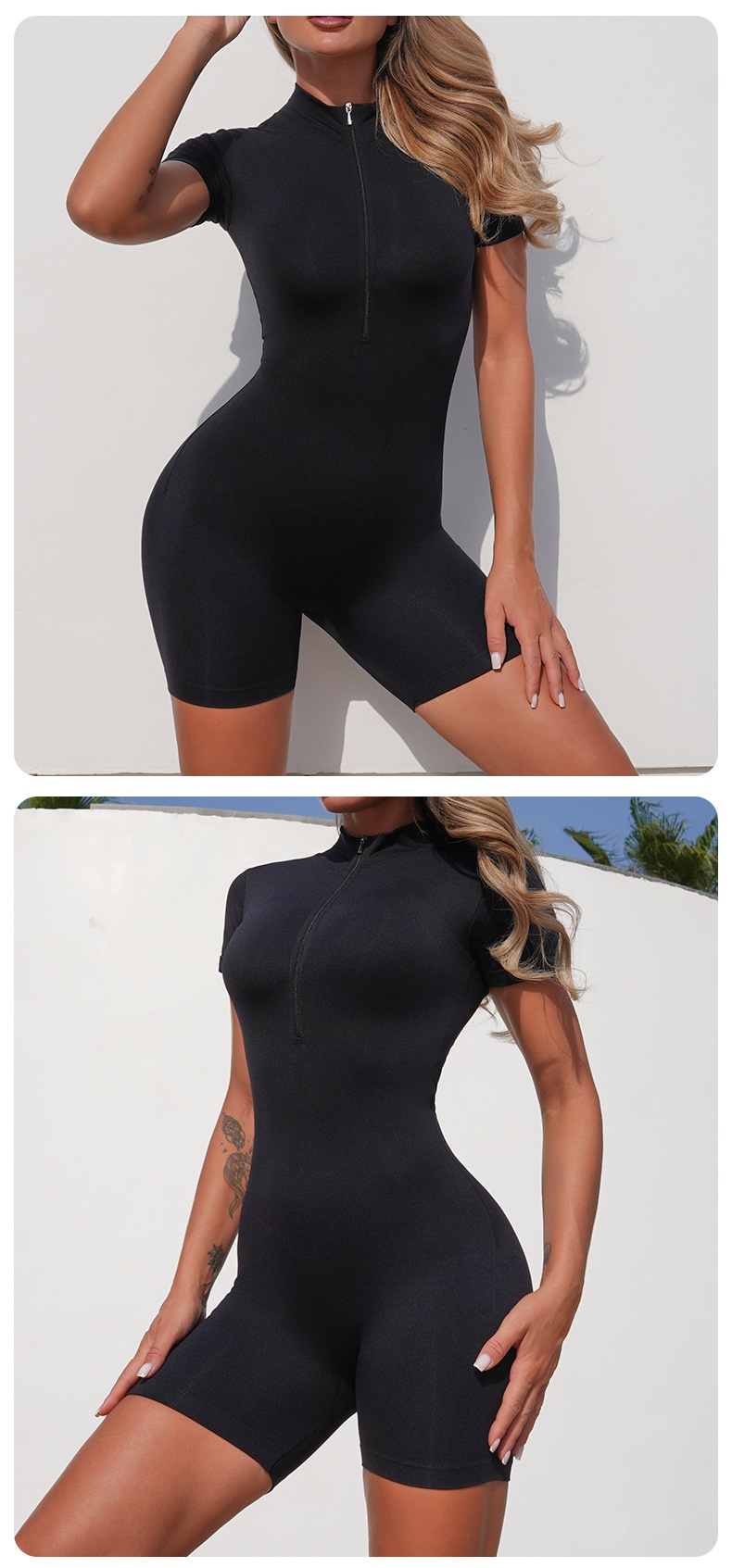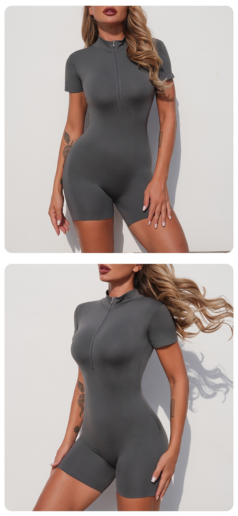 • Zippered Short-sleeve Fitness Workout And Running One-piece Shortsjumpsuit Form-fitting Yoga Wear