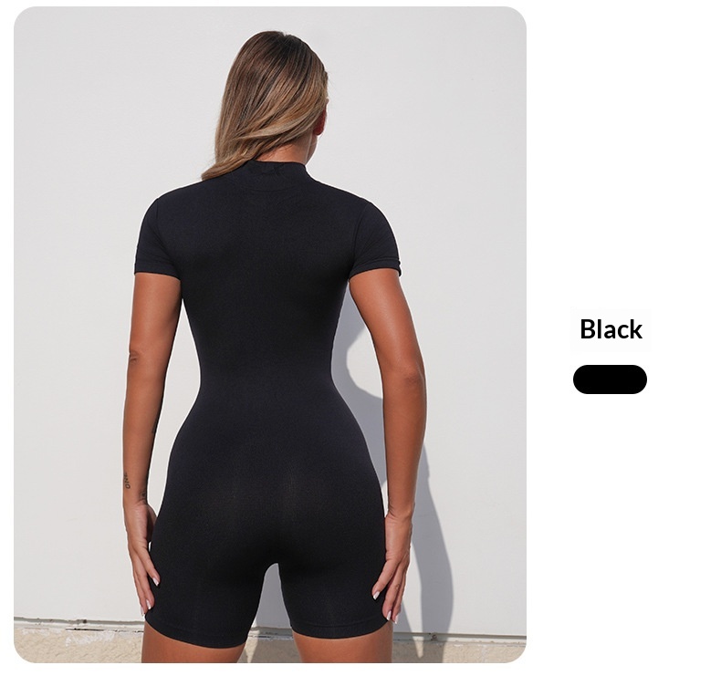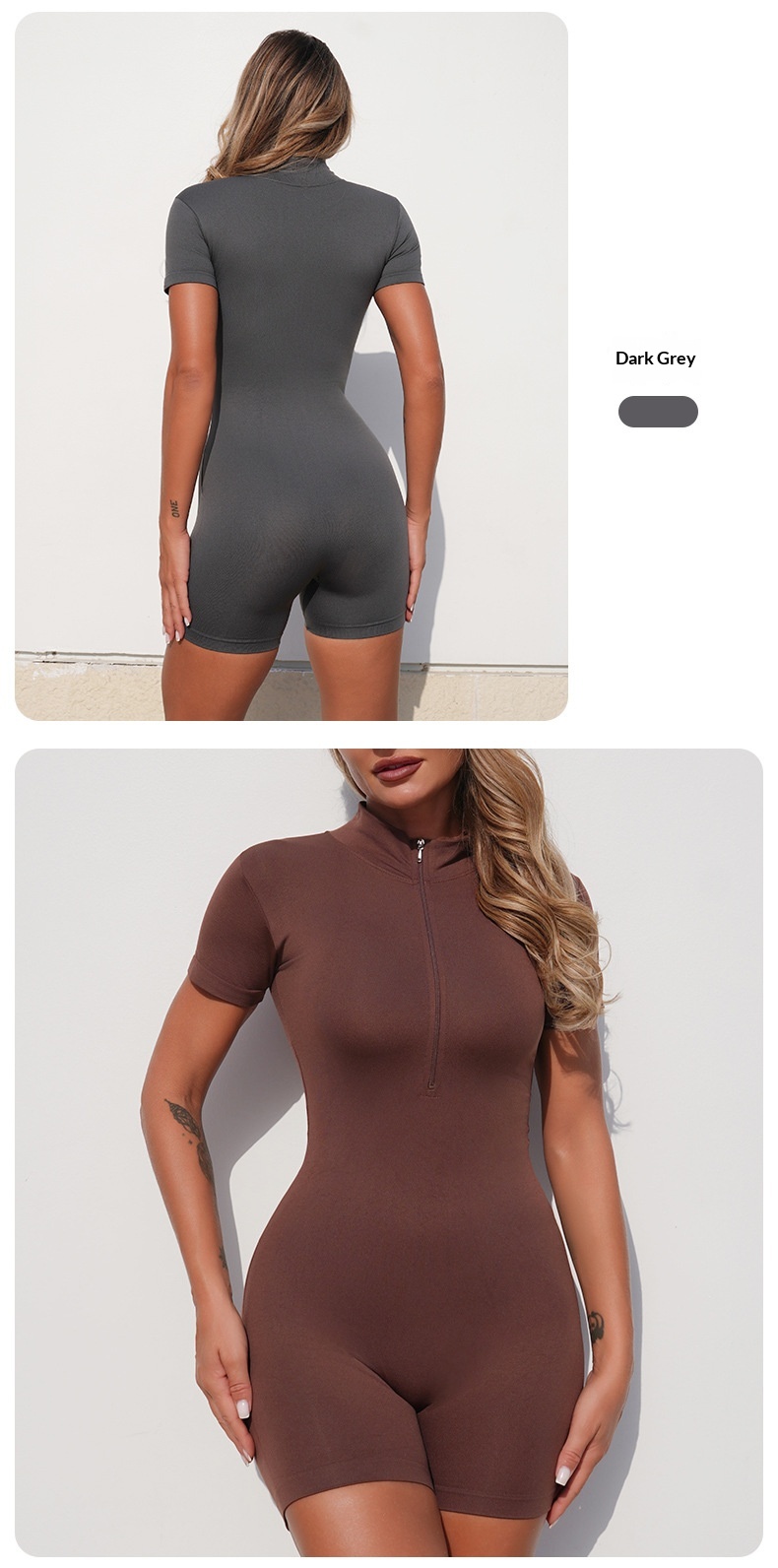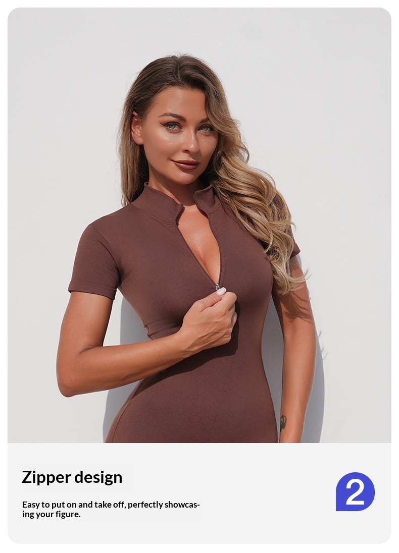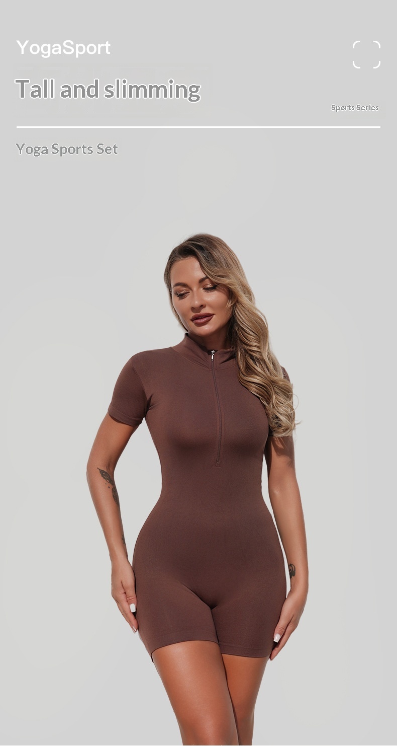 • Zippered Short-sleeve Fitness Workout And Running One-piece Shortsjumpsuit Form-fitting Yoga Wear