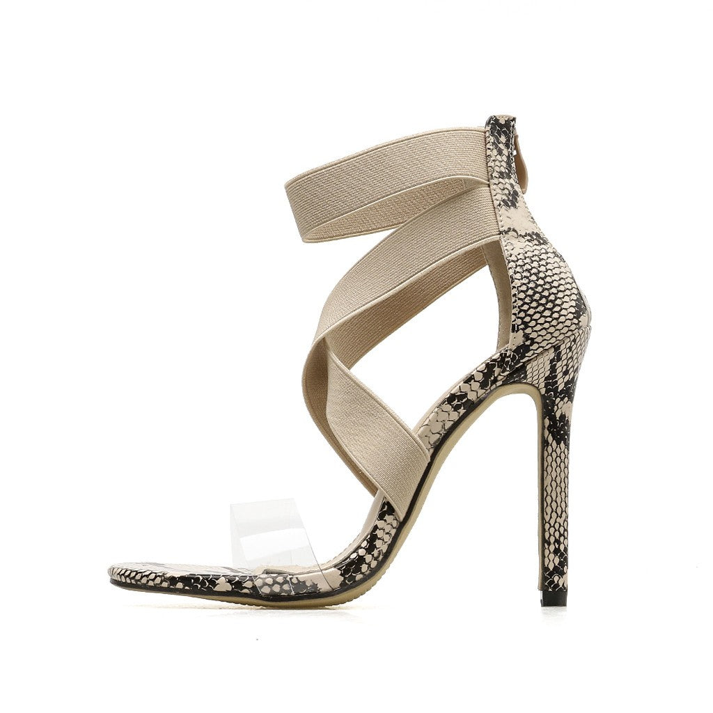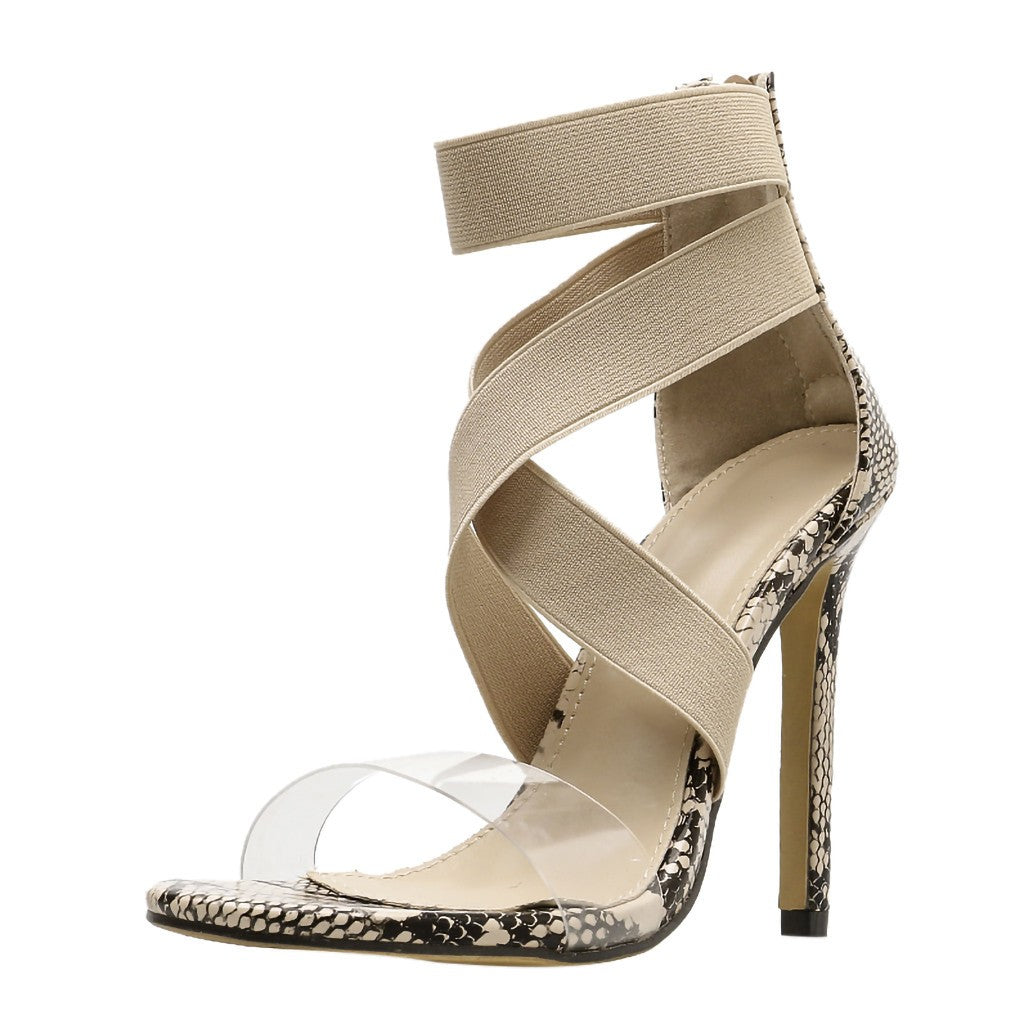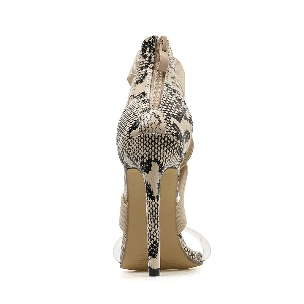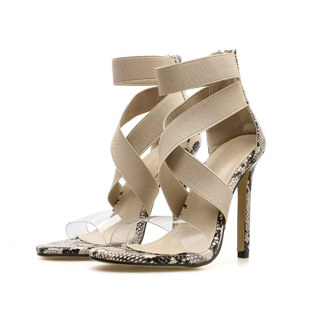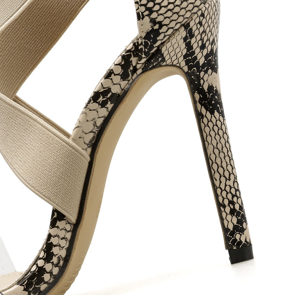 Sexy Women Snake Skin Pattern Cross Strap Non-slip Pumps Shoes High Heel Sandals