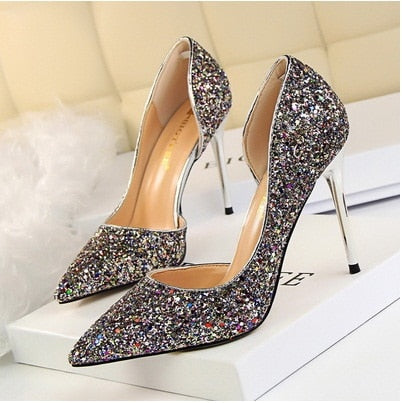 Women Pumps Extrem Sexy High Heels Women Shoes Thin Heels Female Shoes Wedding Shoes Gold Sliver White Ladies Shoes