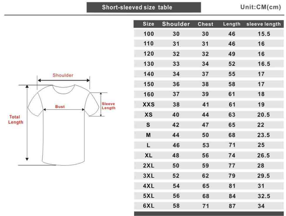 Size: XXS, XS, S, M, L, XL, XXL, XXXL, XXXXL, 100, 110, 120, 130, 140, 150, 160, 5xl, 6xl