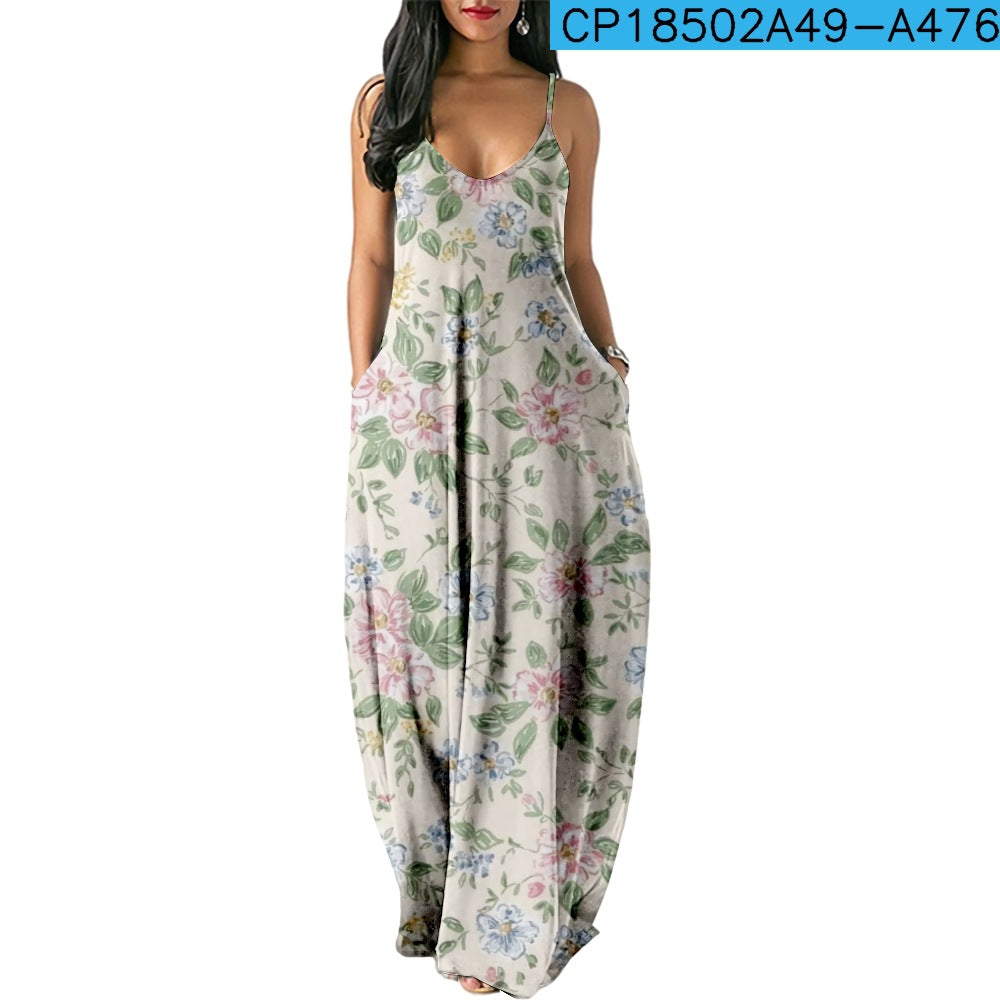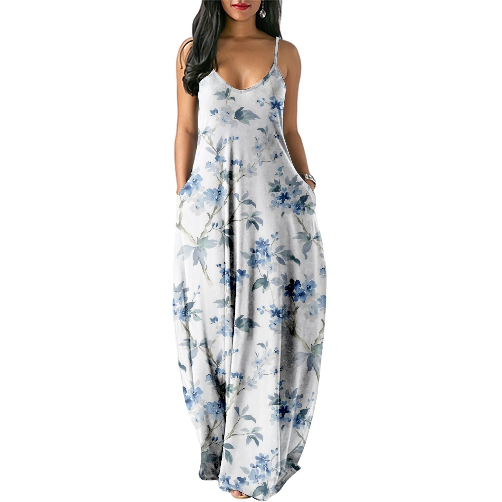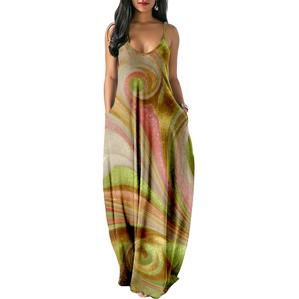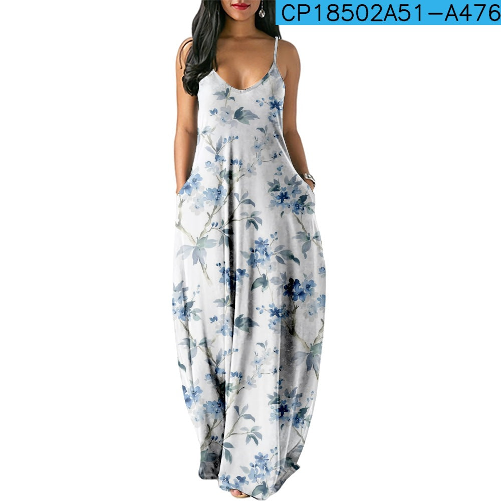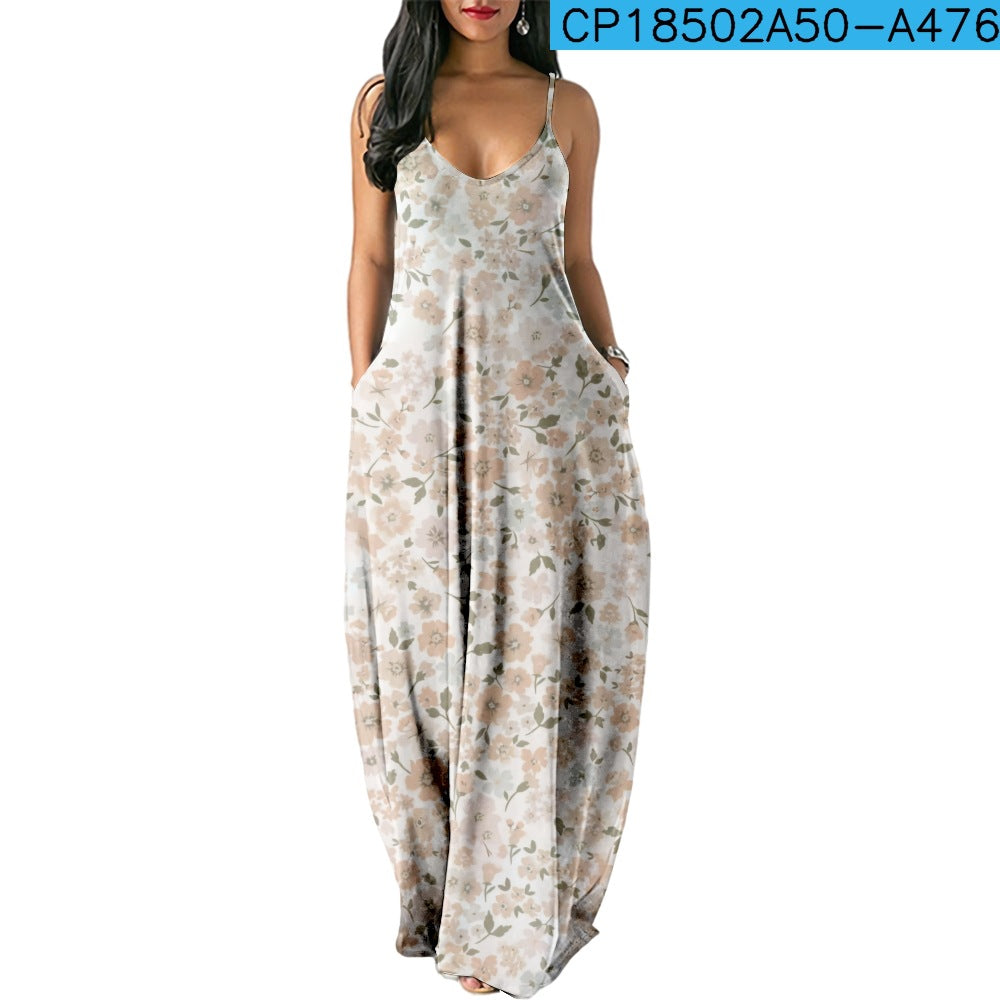 Women's Fashionable Printed Sleeveless Pocket Dress